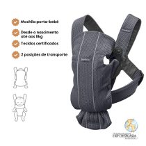 O conforto aerodinâmico permite que carregue o bebé na frente e atrás, voltado para dentro. Pode ser usado de 5-13kg.