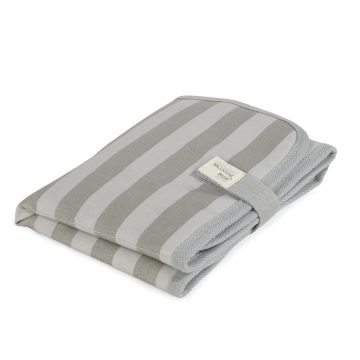 O Muda-fraldas portátil Sintra com riscas beige é a solução perfeita para facilitar as trocas do bebé fora de casa. Com um formato dobrável e ultracompacto, foi pensado para caber facilmente em qualquer bolsa de maternidade. Possui fitas que mantêm o muda-fraldas fechado, poupando espaço e garantindo praticidade nos passeios.