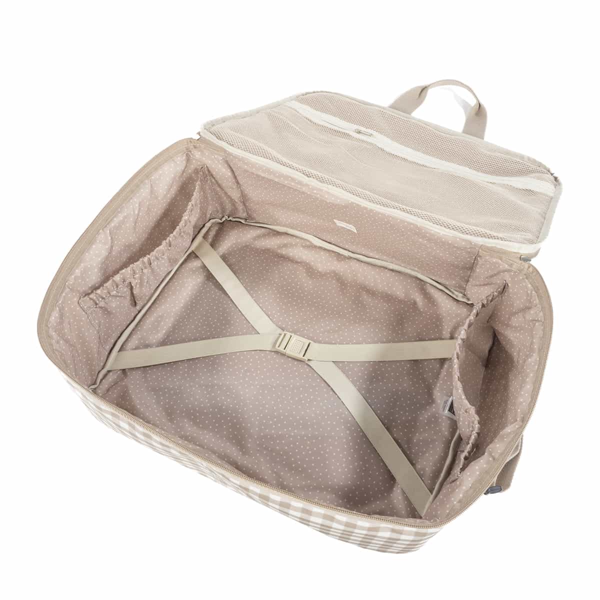 A mala de maternidade Caetana foi especialmente concebida para o momento mais importante da maternidade, a chegada do seu bebé. Por isso é necessário um acessório para transportar tudo o que é necessário para sim e para o bebé. Esta mala é o modelo perfeito para levar tudo o que não pode faltar neste dia tão especial. É cómoda, leve e maleável com dimensões retangulares e abertura prática para ter todas as suas necessidades acessíveis. Dispõe de fecho em ambas as direções que facilita a sua abertura, inclui uma alça grande para transportá-la ao ombro e duas alças pequenas de mão. O compartimento interno é forrado e dispõe de um elástico para guardar a roupa e manter tudo no lugar.
