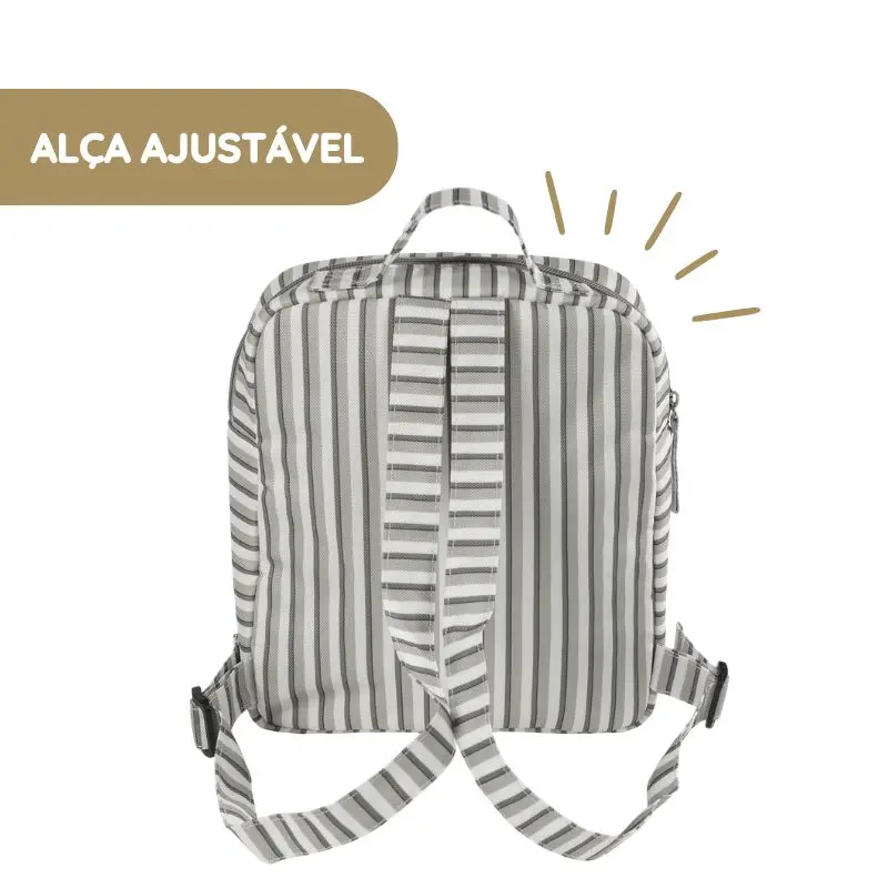 Com estampado Rayas delicado, fecho de correr seguro, alças ajustáveis e material resistente, esta mochila é perfeita para acompanhar os mais pequenos nas suas atividades diárias no infantário e passeios.