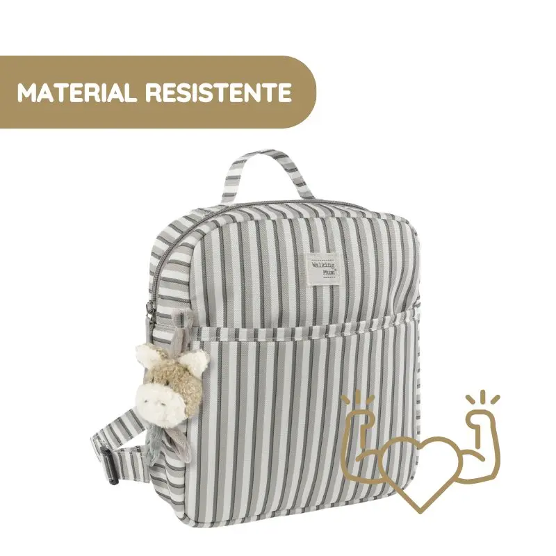 A Walking Mum é reconhecida pela qualidade dos seus materiais, e a Mochila Kids Botton Rayas não é exceção.