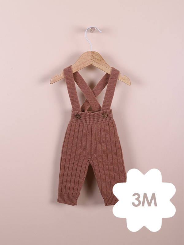 Calças com alças tricotadas numa mistura suave de lã merino e caxemira, ideal para bebés até aos 6 meses.